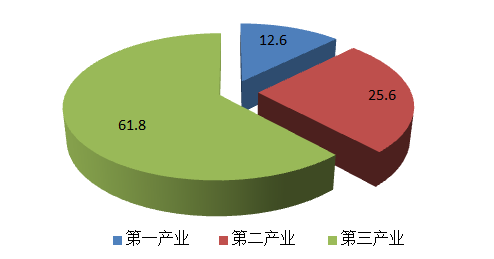 初步核算,全年實現地區生產總值509.42億元,按可比價計算,比上年增長0.1%。其中,第一產業增加值64.21億元,增長3.5%;第二產業增加值130.53億元,下降3.8%;第三產業增加值314.68億元,增長1.1%。三次產業結構比重為12.6:25.6:61.8。
