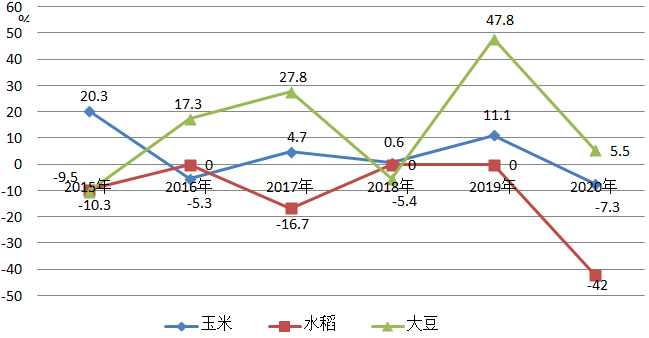 圖3 2015-2020年主要糧食作物產量增速對比情況
