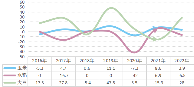 圖3 2016-2022年主要糧食作物產量增速對比情況(%)