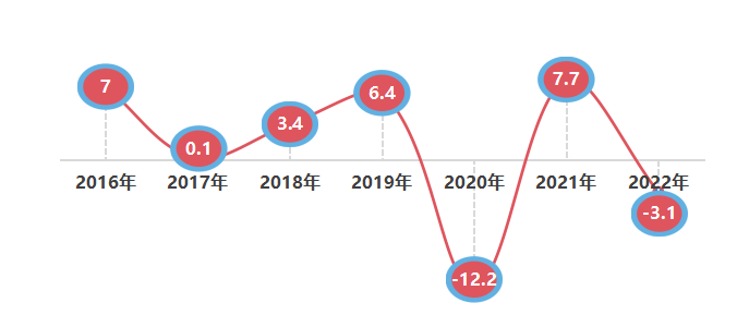 圖4 2016-2022年規模以上工業增加值增速(%)