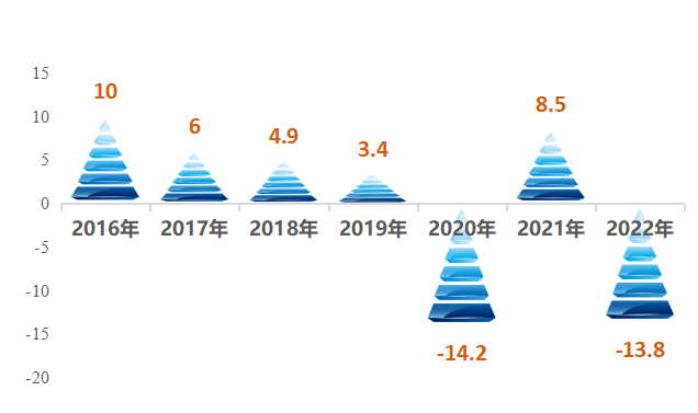 圖5 2016-2022年社會消費品零售總額增速(%)