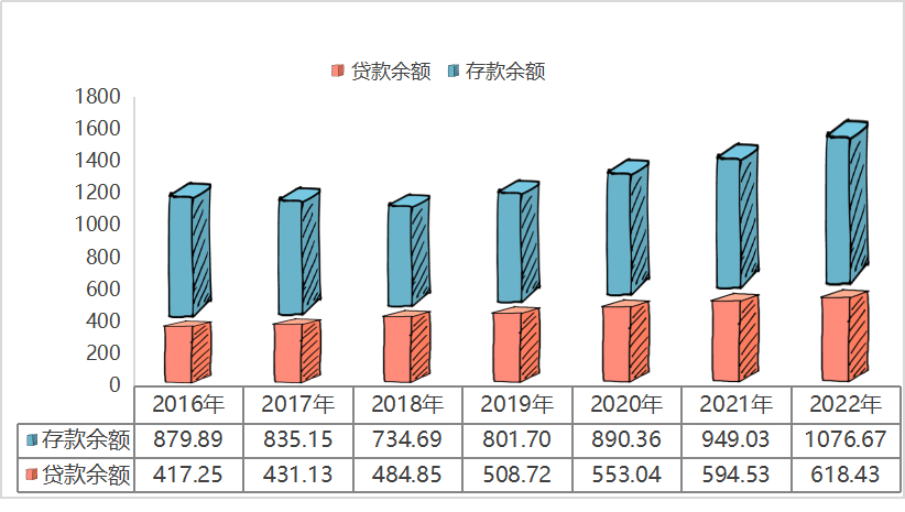 圖6 2016-2022年金融機構本外幣存款貸款余額(億元)