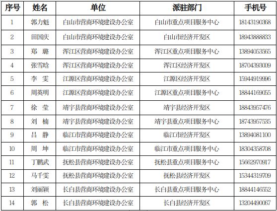 請社會各界朋友們共同參與到全市營商環境和項目建設監督中來,如發現相關部門及營商(項目)服務專員存在“不作為、慢作為、亂作為”“門難進、臉難看、事難辦”“吃拿卡要”“前店后場”等破壞營商環境或影響全市項目建設的問題,請及時向我們反映,讓我們攜手同行,全力為我市項目建設提供優質、高效、便捷的服務,為持續優化營商環境助推白山經濟實現高質量發展貢獻力量!